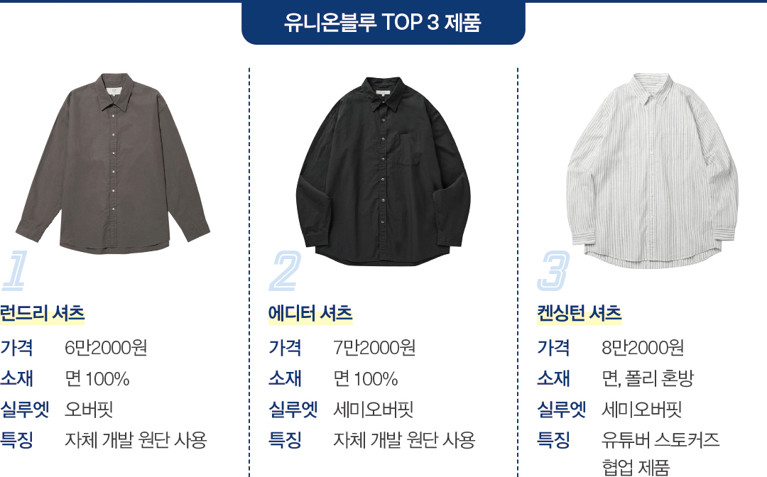 브랜디드인더스트리(대표 김우용)의 남성 캐주얼 토털 브랜드 ‘유니온블루’는 품질 대비 합리적인 가격으로 20대부터 40대까지 다양한 연령층의 마음을 사로잡았다. 유니온블루의 시그니처이자 가장 많이 판매한 제품인 ‘런드리 셔츠’는 누적 5만 장 판매를 기록했다.