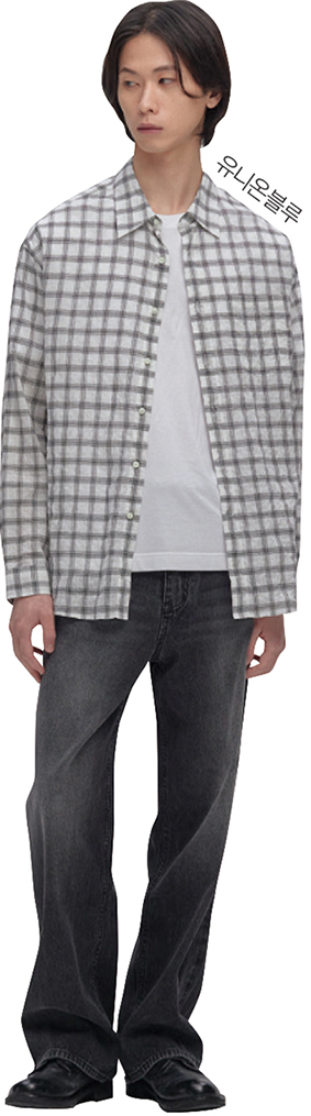 유니온블루의 셔츠는 비즈니스 캐주얼 콘셉트의 여유로운 실루엣이 특징이다. 런드리 셔츠의 경우 바스락거리는 촉감을 위해 원단을 직접 연구하고 개발해 제작했다. 또 필요시 추가 워싱으로 퍼커링(우글거림) 디테일을 더하기도 한다.