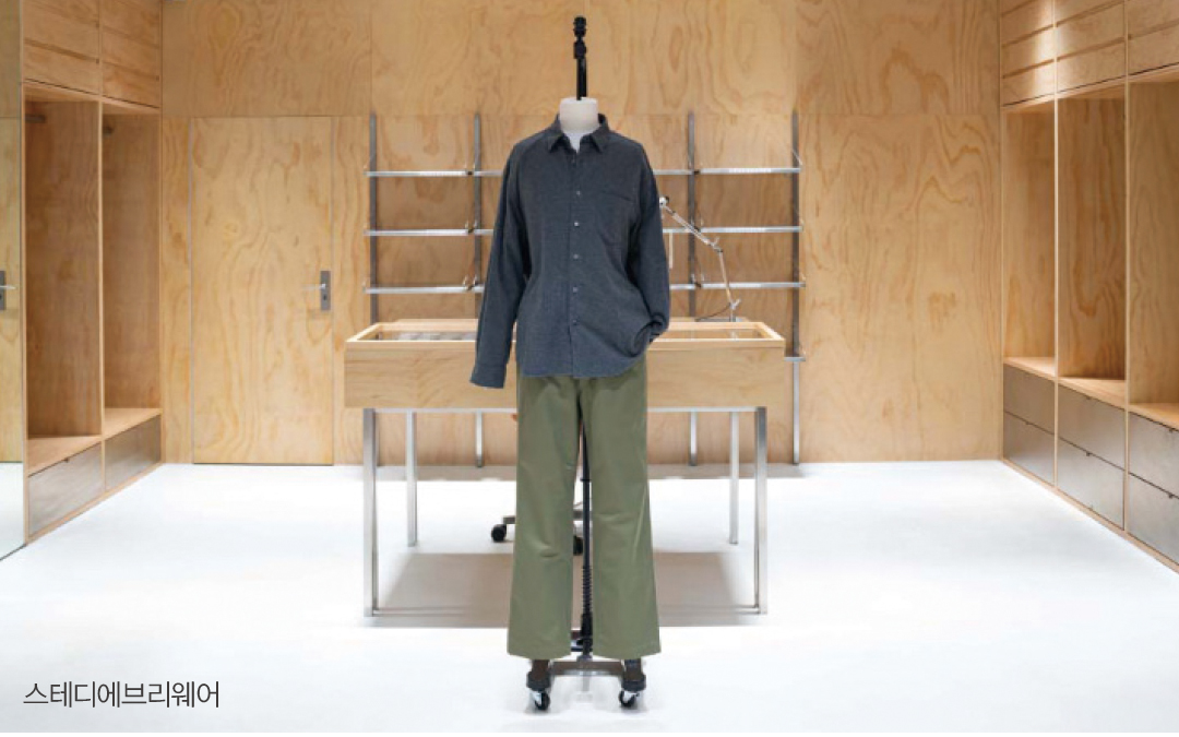 스테디에브리웨어는 셔츠와 니트를 메인 제품으로 선보이고 있다. 특히 셔츠의 경우 본연의 디테일을 살리기 위해 노력한다. 내외부 솔기를 깔끔하게 봉제하는 것은 물론 형태 유지를 위해 16 땀수와 비접착 심지를 적용한다.