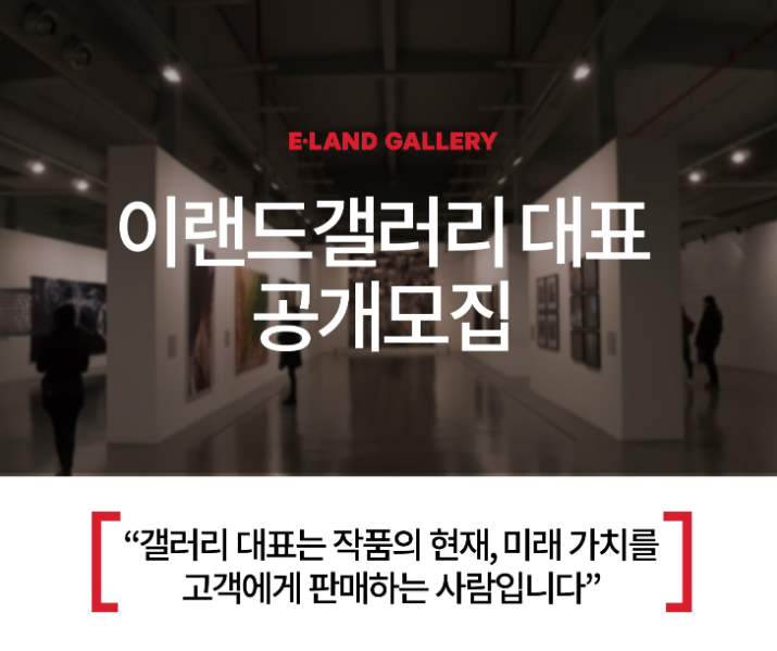이랜드갤러리 대표는 차세대 작가와 미술 시장의 성장을 이끌 예술 비즈니스의 최고 책임자로서, 작품의 현재와 미래 가치를 고객에게 판매하는 그룹의 중추적 역할을 맡는다. 예술의 본연적 가치와 상업적 가치를 동시에 고려해 비즈니스 구조를 설계하고, VIP 고객에게 보유 작품을 세일즈한다.