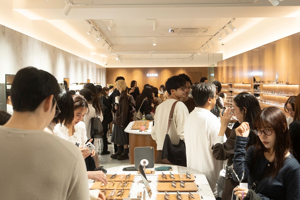 매장에는 선글라스, 안경, 액세서리 라인을 포함한 카린의 전 제품 라인업이 전시돼 있으며, 브랜드 정체성을 유지하면서도 일본 고객의 기대에 부응하는 전문성과 편의성을 동시에 구현한 것이 특징이다.
