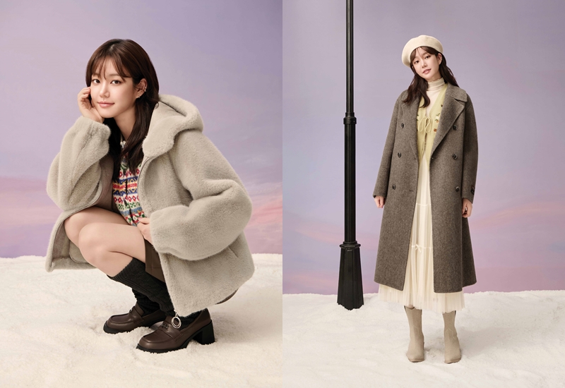 화보 속 이유비는 알파카 혼용 소재로 보온성과 퀄리티를 높인 브라운 컬러의 헤링본 롱코트에 니트 베스트와 화이트 플레어 샤 스커트로 따뜻하면서도 로맨틱한 겨울 스타일링을 완성했다. 또 멜란지 그레이 컬러의 스탠카라 롱코트에 보카시 원단의 컬러 니트와 아이보리 팬츠, 베레모를 매치해 감성적인 롱코트룩을 선보였다.