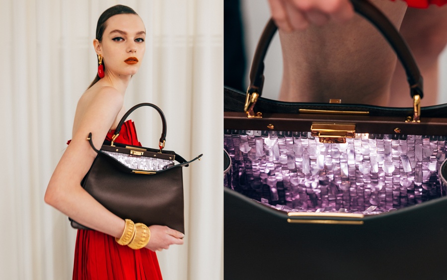 이번 시즌 피카부 이너 뷰티 백은 외관의 미니멀함을 유지하면서 내부에 파예트, 비즈, 스터드, 크리스털 장식을 적용한 것이 특징이다. 파예트 장식은 40시간 이상의 수작업을 거쳐 다양한 형태로 구현됐다. 핑크 밍크 소재의 피카부 백에는 멀티컬러 핸드 비딩 자수를 더했으며, 제작에는 200시간 이상이 소요됐다.