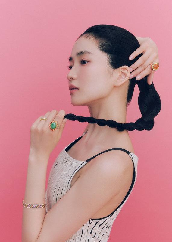 마지막으로 김태리는 땋은 머리로 한국적인 분위기를 강조한 화보에서 반지를 돋보이게 연출했다. ‘금박모란문’ 반지는 메인 보석과 주변 보석이 이루는 강렬한 색 대비와 함께 부귀와 번영을 상징하는 모란문양을 반지 측면에 정교하게 구현해, 신비롭고 고풍스러운 아름다움을 자아냈다.