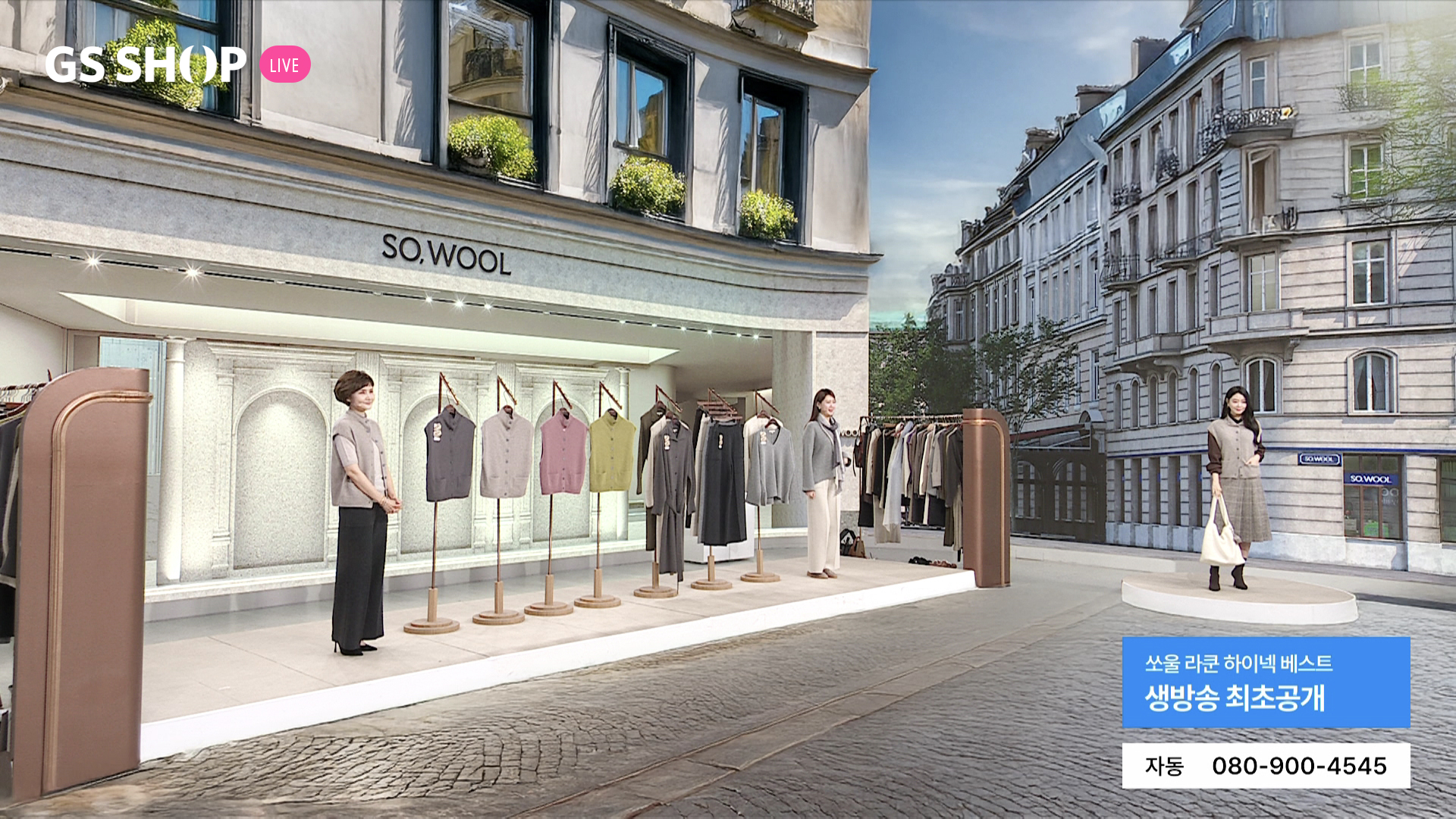 AI 스튜디오로 유럽의 스트리트 매장을 연출한 '쏘울' 패션 상품 방송화면