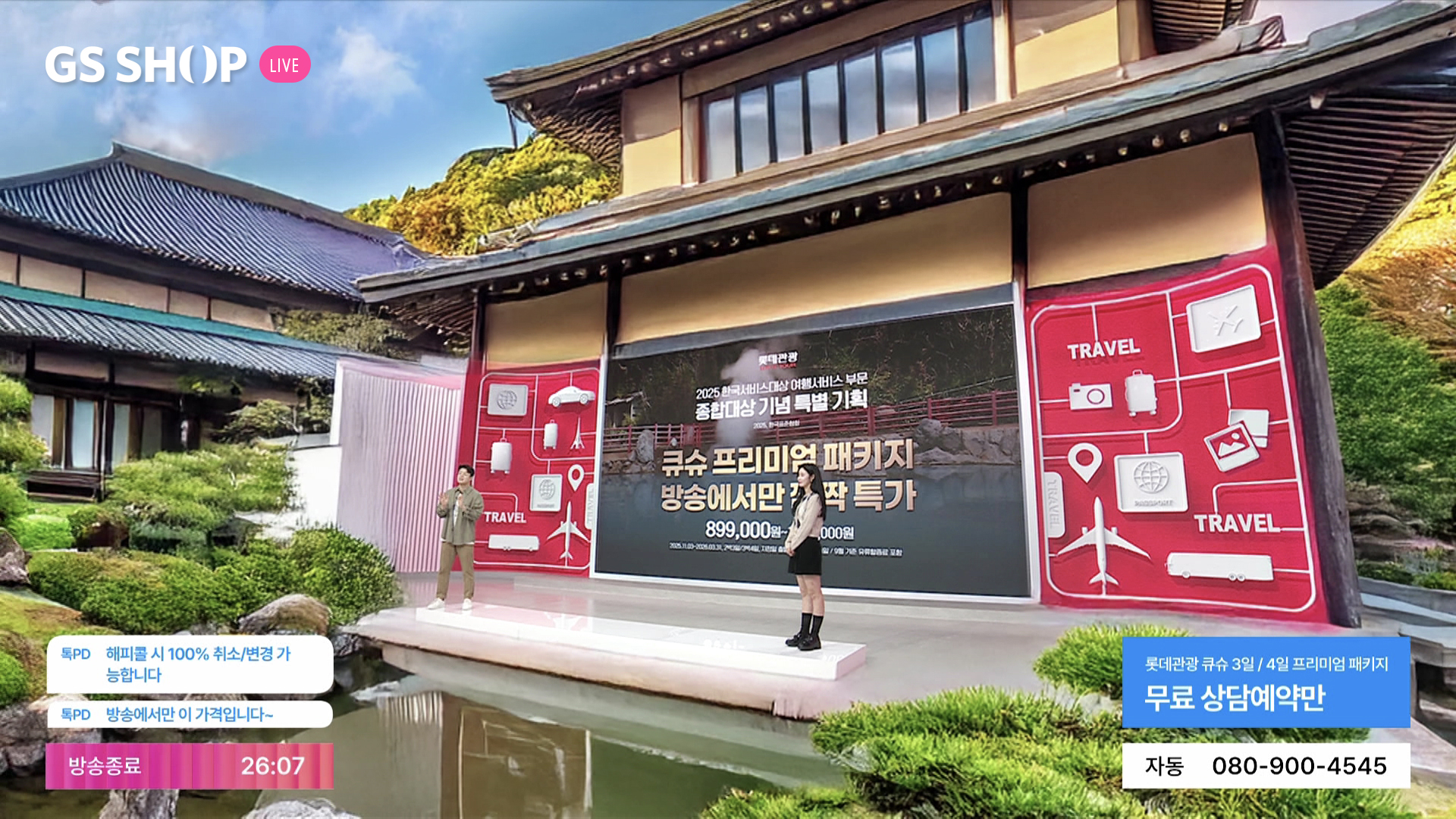 AI 스튜디오로 일본 정원과 건축물을 연출한 일본 여행 상품 방송 장면